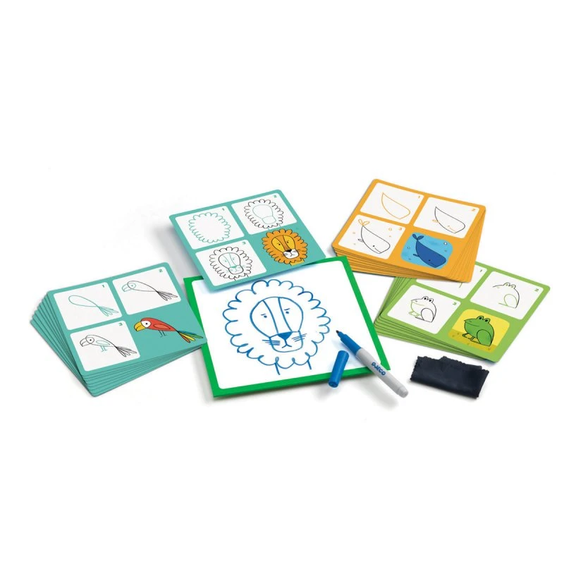 Animal and Co dans la collection Step by Step de Djeco est un jeu éducatif pour apprendre à dessiner les animaux.