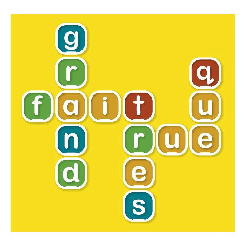 Bananagrams junior propose des mini jeux pour une découverte progressive de l’alphabet, des syllabes et de leur son pour les enfants de 5 et 6 ans. Une fois cette première étape franchie, les enfants pourront commencer à créer des grilles de mots comme dans la version classique du bananagrams.