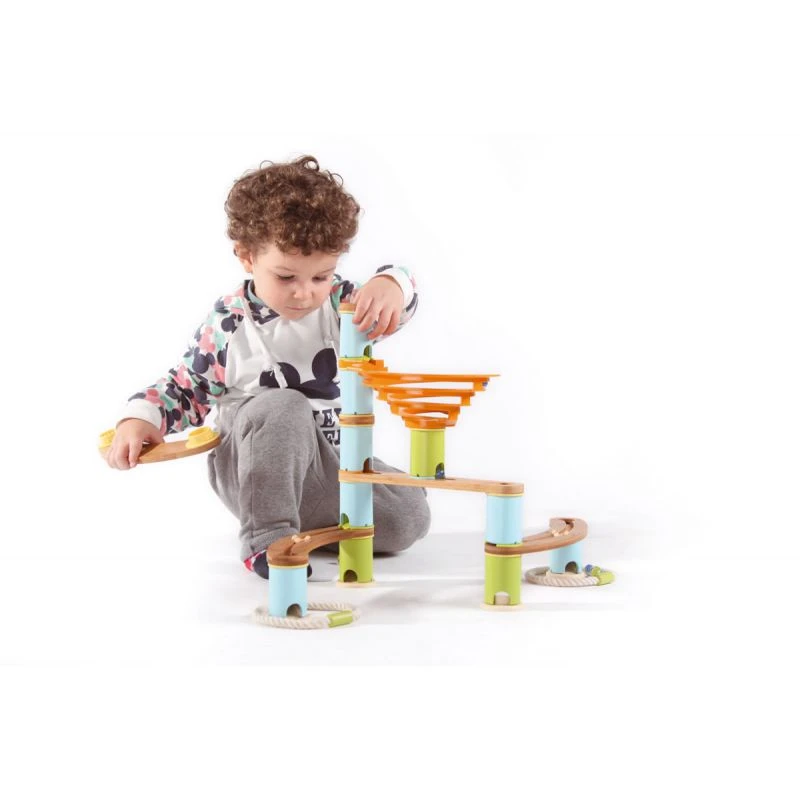 Découvrez le kit de base de Bamboo Planet. Ce circuit à billes de 48 pièces permet d’entrer dans le monde des merveilleux toboggans à billes Bamboo Planet. Ces toboggans de très grande qualité sont sont particulièrement stables et robustes car les éléments se clipsent et s’emboîtent les uns dans les autres contrairement aux marques concurrentes. Ainsi l’enfant pourra jouer longtemps avec sa construction sans risque de tout faire s’écrouler.
