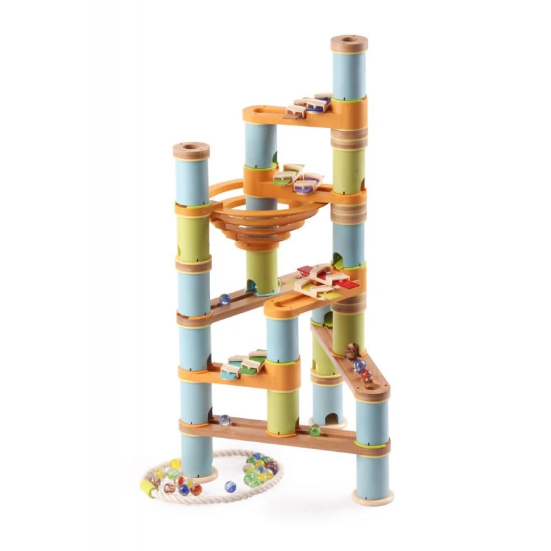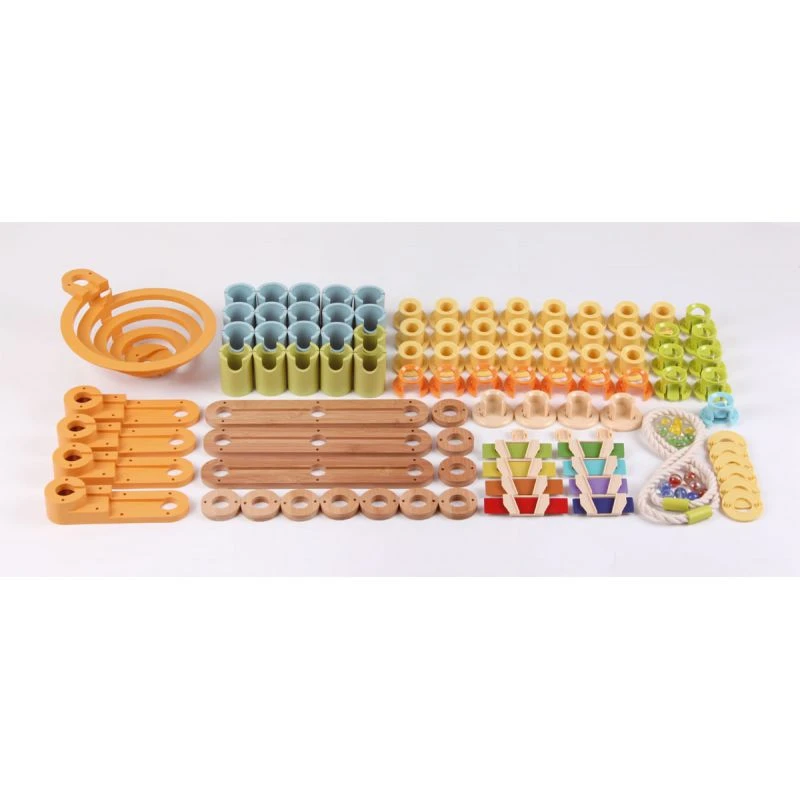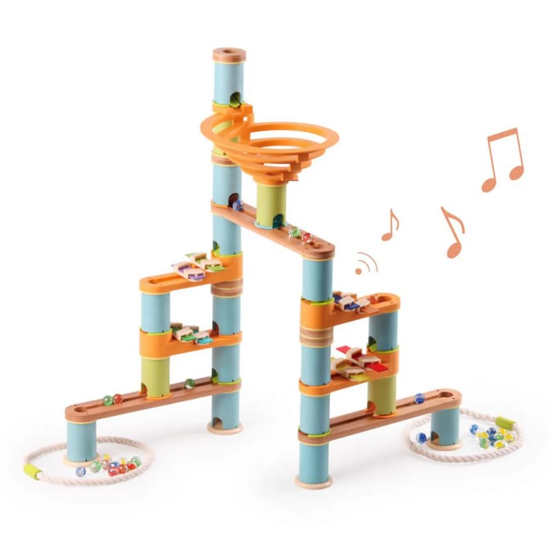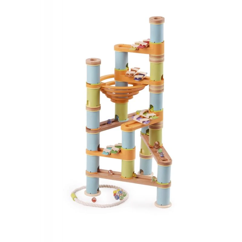 Découvrez les magnifiques circuits de billes Bamboo Planet avec ce circuit de billes musical de 98 pièces. Il combine un toboggan à billes en bambou avec plusieurs lames de xylophones à disposer le long du parcours des billes.