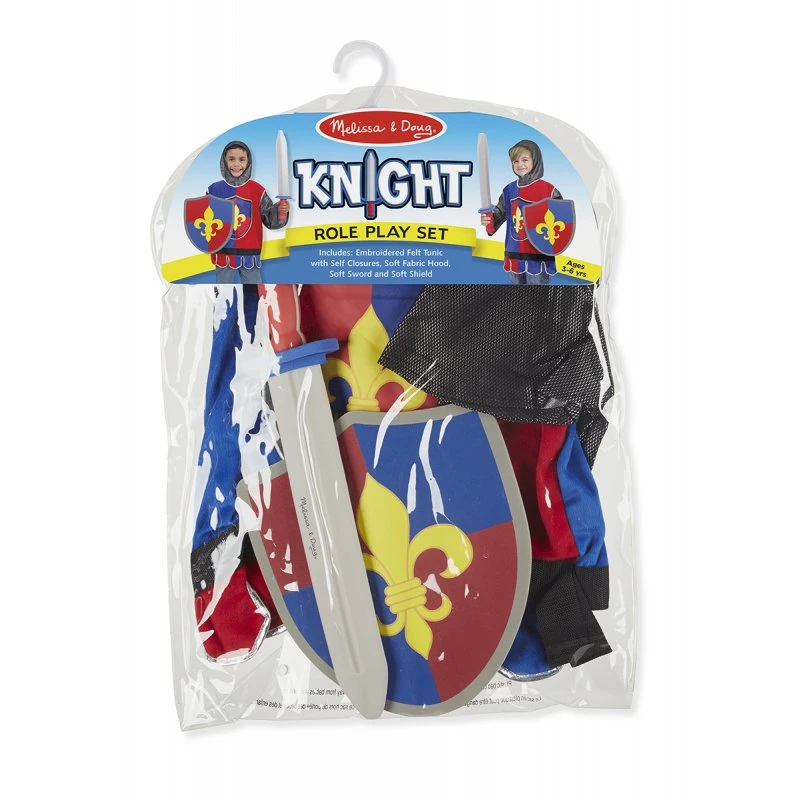Ce déguisement de chevalier de grande qualité est très réaliste. Le plastron et le bouclier arbore fièrement les armoiries de son clan. Avec son épée et son bouclier en mousse dure, vote petit chevalier ne craindra ni les dragons, ni les brigands de grand chemin.