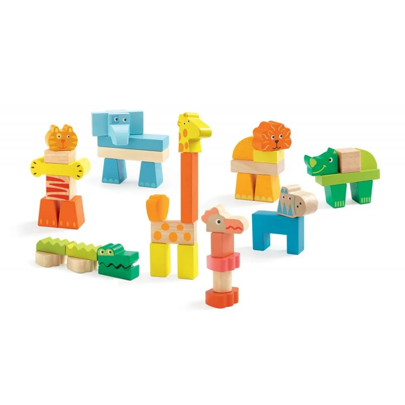 Grand classique des jouets de la marque Djeco, Créanimaux est un ensemble de 42 blocs en bois permettant de créer des animaux. L’enfant pourra selon son envie recréer des animaux classiques comme le lion, la girafe, le crocodile ou l’éléphant mais pourra également s’amuser à inventer des animaux.