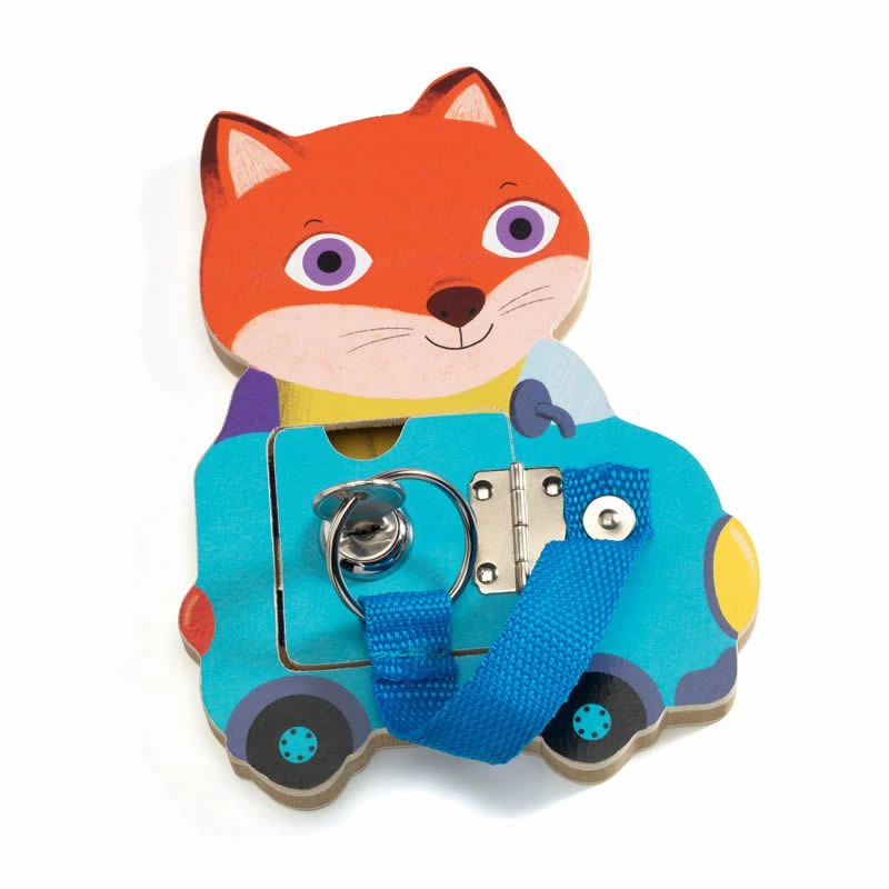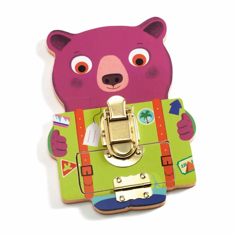 Djeco vous présente le jeu Locktou, un ensemble de 3 pièces en bois coloré représentant de sympathiques animaux et proposant trois jeux de verrous.