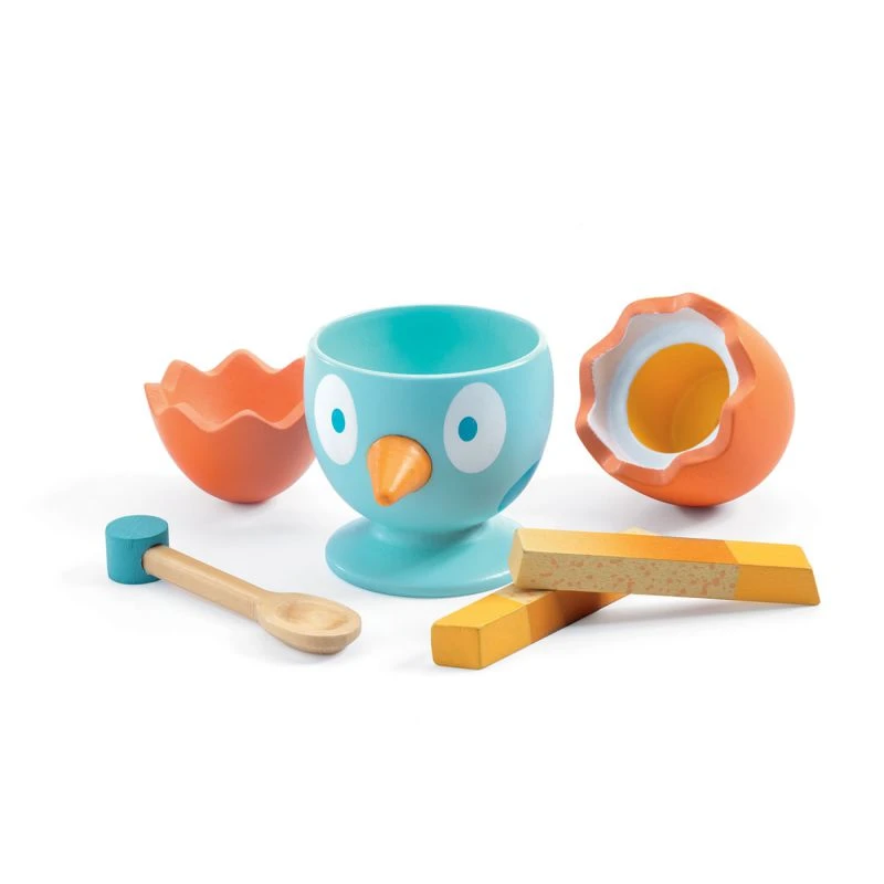 Djeco vous présente l’œuf coco : une dînette en bois d’œuf à la coque amusante et original.