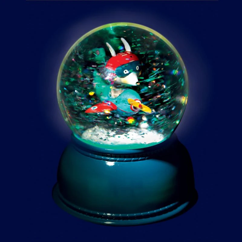 A la fois veilleuse et boule à neige, cette veilleuse avion intègre un mécanisme qui va faire tourbillonner les paillettes dans la boule pour offrir un spectacle unique donnant réellement l’impression que cet avion vole dans les airs.