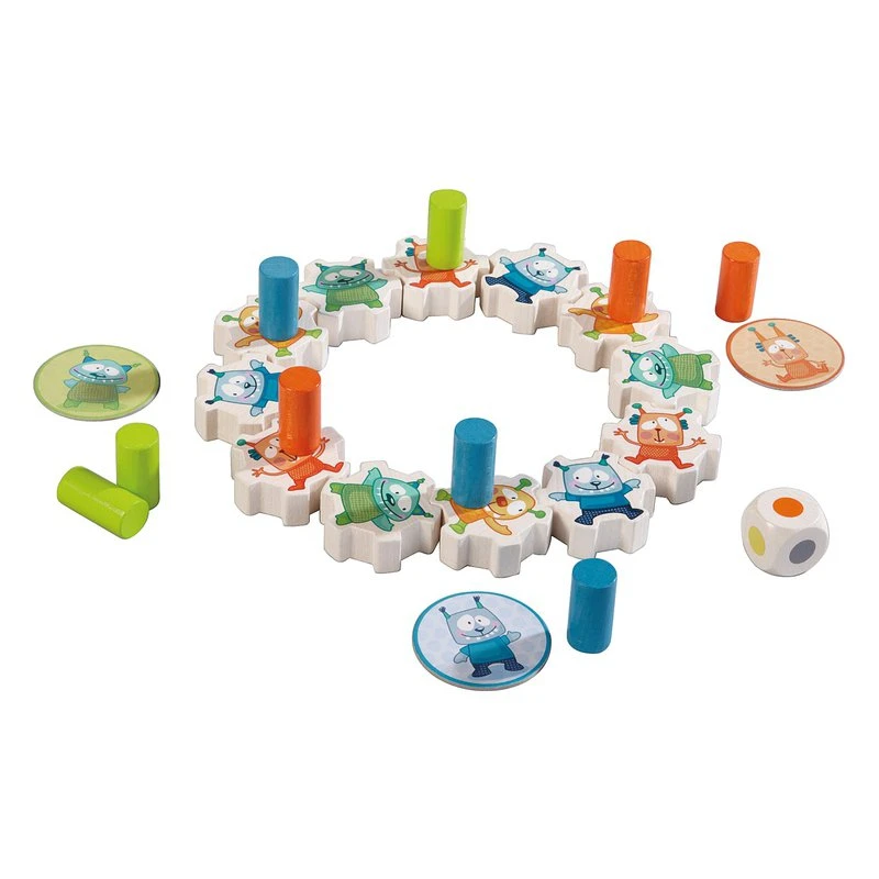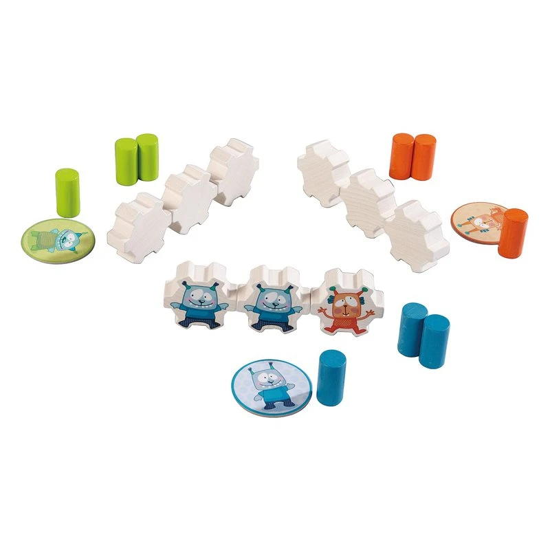 Contenu : 12 monstres à empiler, 12 plots pour emboîter, 1 cadre, 4 plaquettes, 1 dé, 1 règle du jeu