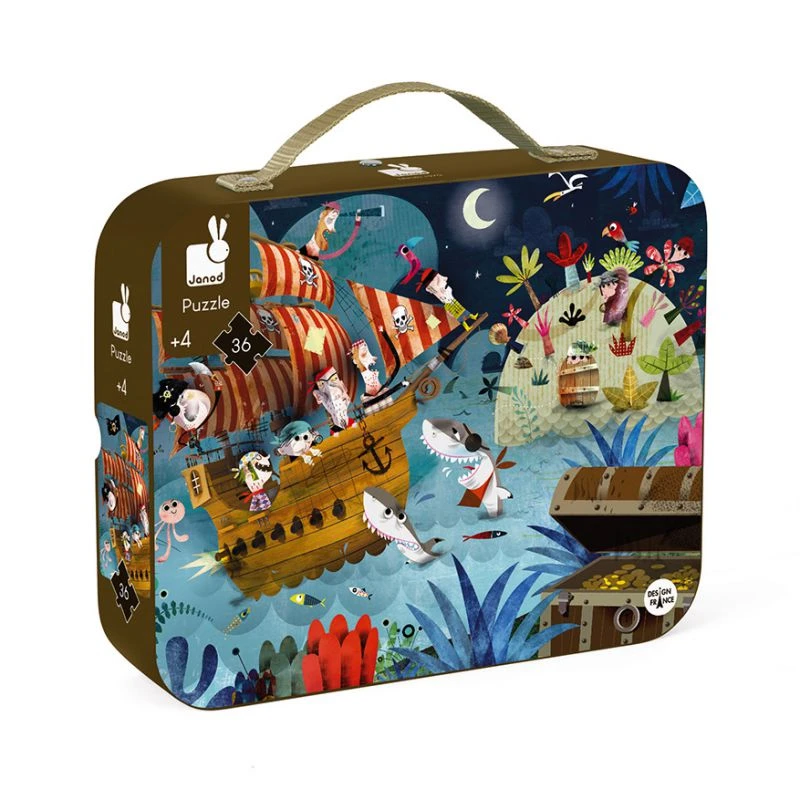 A la fois humoristique et poétique ce très beau puzzle de 36 pièces de la marque Janod sur une chasse aux trésors plaira aux moussaillons dès 4 ans. Les nombreux détails sur la faune, la flore et les personnages de ce puzzle seront autant de prétexte pour imaginer des histoires.
