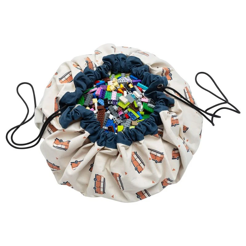 Avec ce tapis de jeu aux illustrations inspirées de la cité des anges, Play and Go propose un tapis aussi joli que pratique. En effet, une fois le jeu terminé, il suffira de tirer sur les ficelles intégrées au tapis pour rassembler tous les jouets et transformer ce tapis en sac de rangement.
