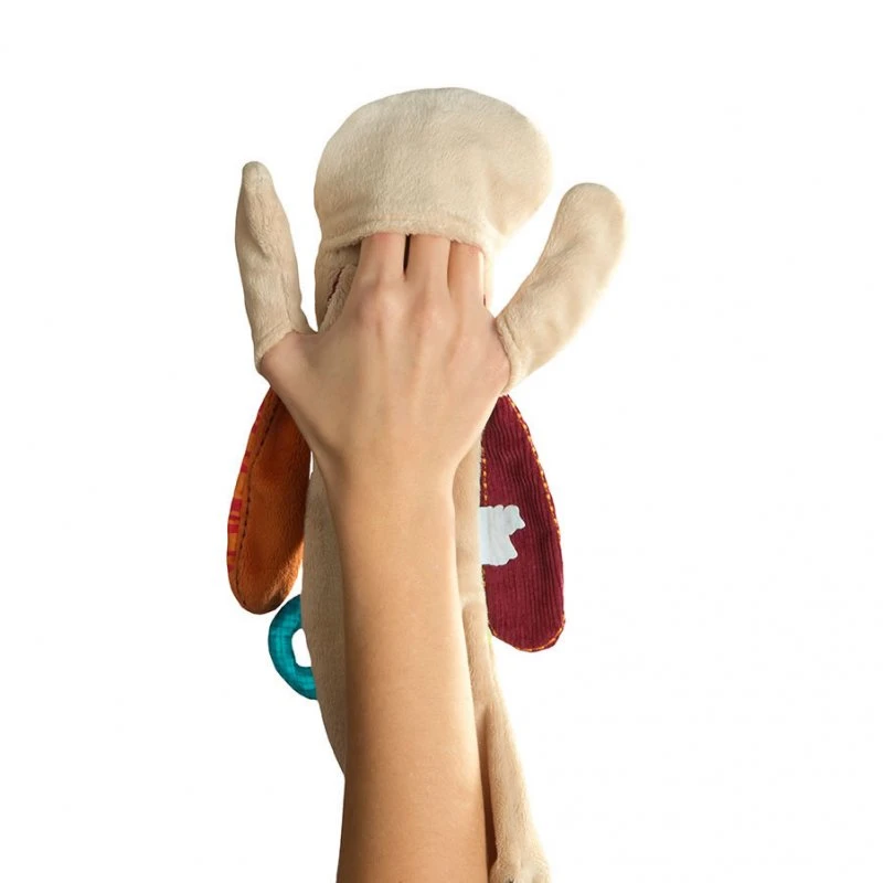 Jef le chien est un doudou plein de surprises, bébé s’amusera à découvrir ses différentes couleurs et textures. Il n’aura aucun mal à attraper ce doudou par ses oreilles, ses pattes ou sa queue.