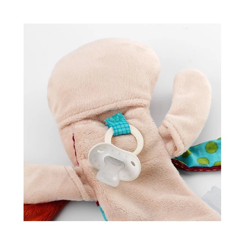 Ce doudou est également une marionnette à main pour jouer avec bébé et une attache tétine très pratique qui évitera de l’égarer. Le tout est livré dans un joli coffret du plus bel effet.