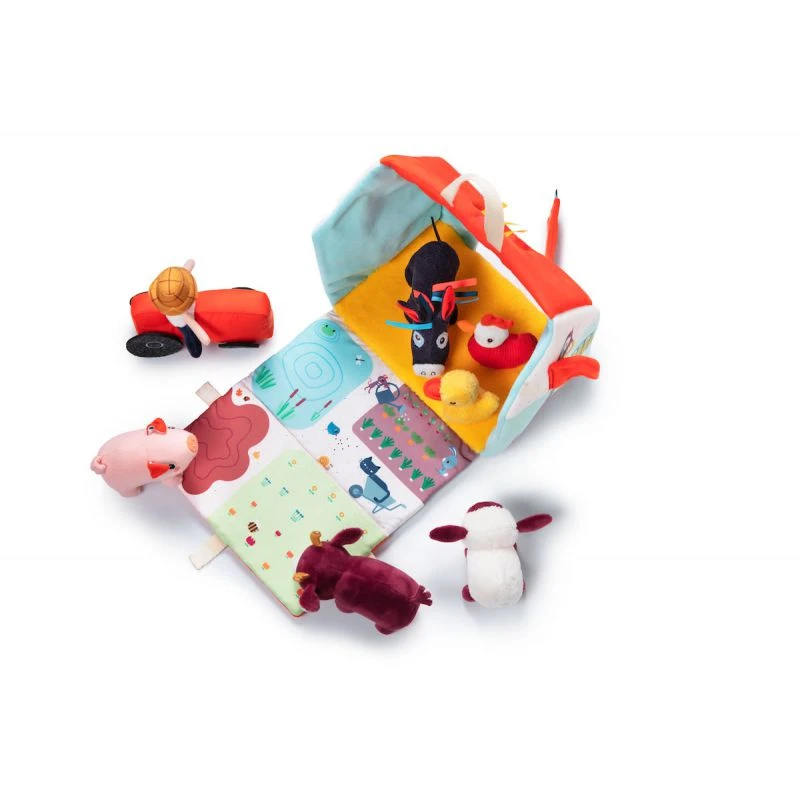 Ma première ferme Lilliputiens est une adorable petite ferme en tissu avec des petits animaux qui reprennent le trait des sympathiques personnages de Lilliputiens.