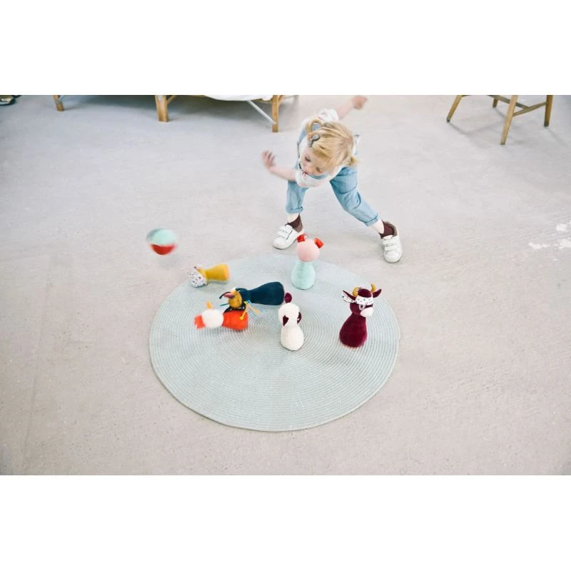 Idéal pour jouer aux quilles à la maison, ce jeu stimulera la coordination yeux-mains et la maîtrise de la balle et il se transformera aussi en jeu d’imagination avec ces 6 jolis personnages.