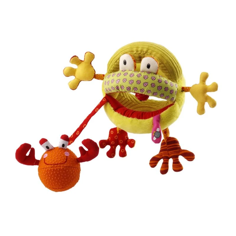 Roméo le crapaud se décline en un hochet à poignées facile à attraper pour bébé. Mais qui a encore avalé Roméo ? C’est oscar le crabe qui a fait les frais de la gloutonnerie de Roméo ! Sors Oscar du ventre de Roméo et appuie lui sur le ventre pour entendre « pouët ».