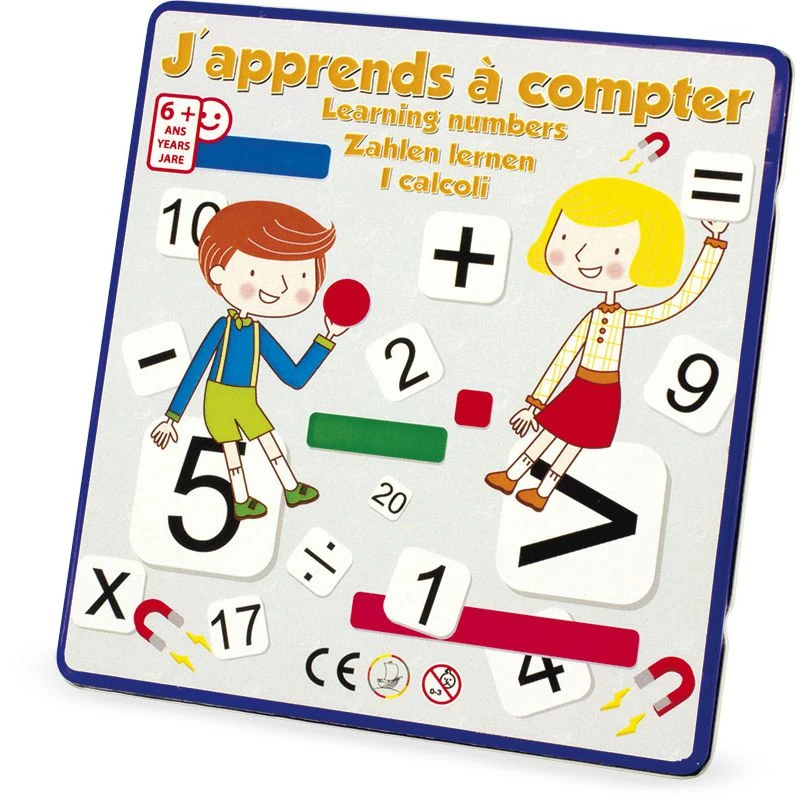 Le coffret magnet chiffres d’Ulysse est idéal pour apprendre les chiffres et les premières opérations. Ce coffret comporte pas moins de 100 pièces magnétiques représentant les nombres de 0 à 20 et les signes mathématiques permettant de symboliser les additions, les soustractions, les multiplications, les divisions ainsi que les comparaisons (inférieur, supérieur ou égal).