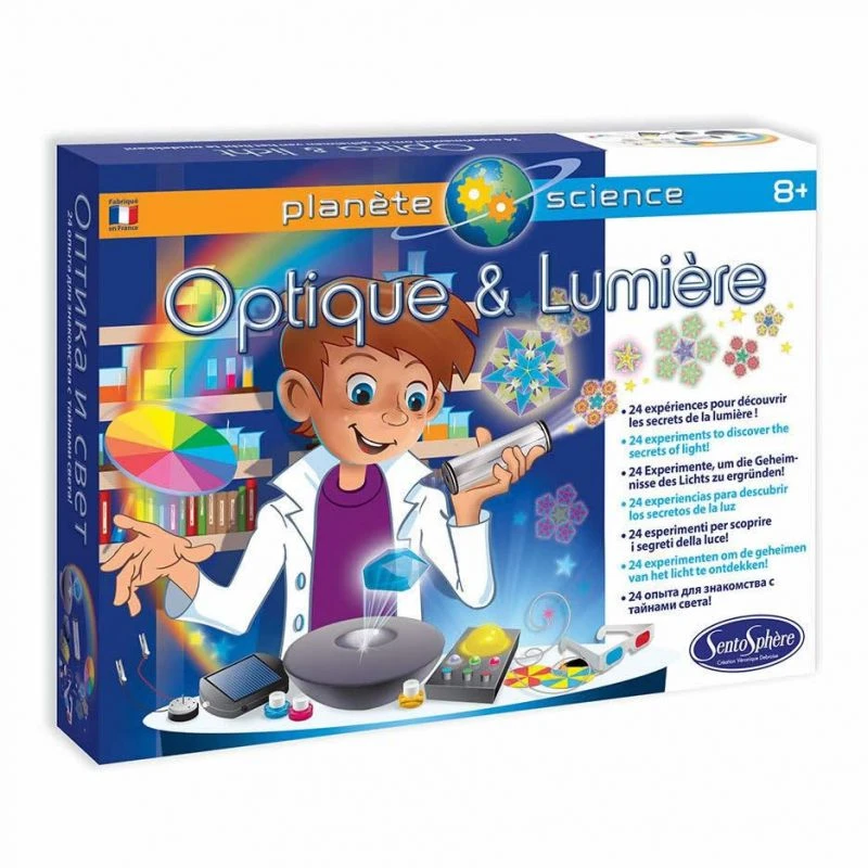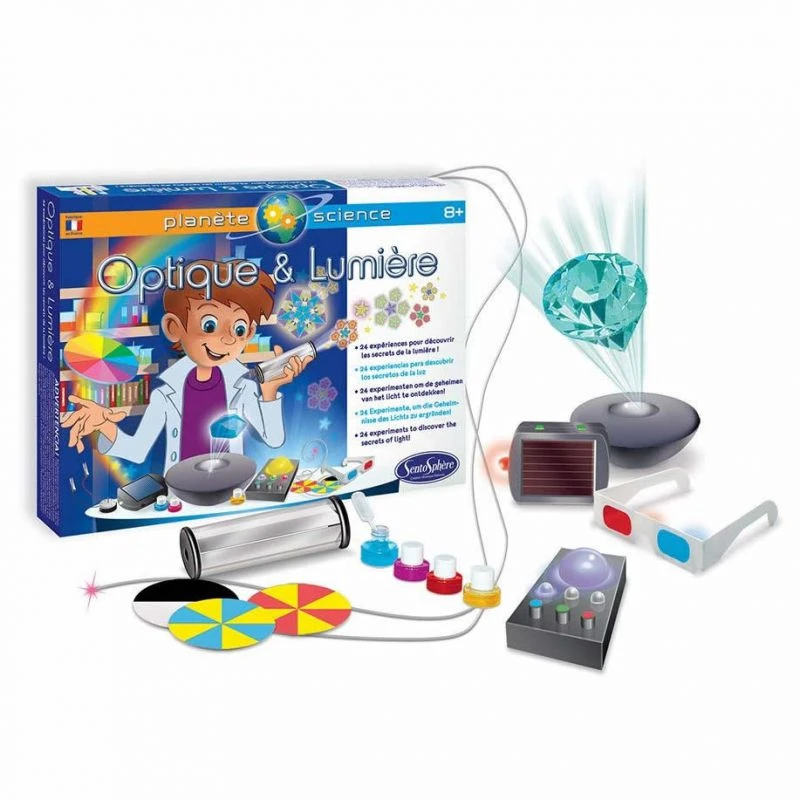 Optique et lumière de Sentosphère est un coffret qui vous invite à découvrir les multiples facettes de la lumière au travers de 24 expériences simples et sans danger. Ces expériences permettront de comprendre les propriétés physiques de la lumière, son pouvoir énergétique et les nombreuses utilisations que l’on peut en faire.