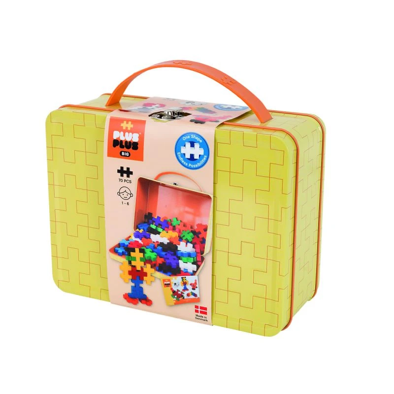 Découvrez la toute nouvelle valisette en métal de gros plus plus (plus plus BIG anciennement appelé plus plus MIDI). Elle contient 70 gros plus plus basic et sera très pratique pour les ranger une fois le jeu terminé ou pour les emmener avec soi lors d’un week end ou des vacances. Votre enfant pourra toujours avoir avec lui ses plus plus et même s’occuper durant un long trajet. Cette valisette solide en métal complète parfaitement ce jeu devenu incontournable.