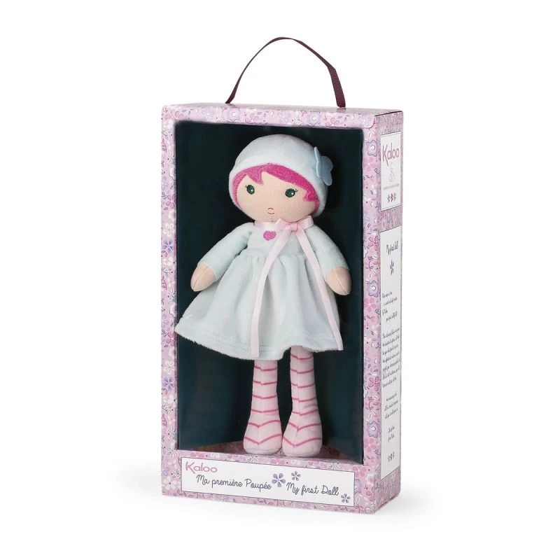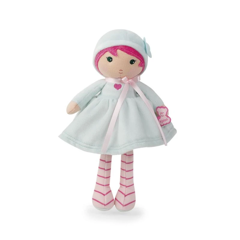 Azure est une poupée chiffon très douce de la collection tendresse de Kaloo. Avec ses cheveux rose et sa robe bleue pâle sur laquelle est brodée un petit cœur, Azure est une adorable petite poupée de tissu. Son petit ruban rose, ses bas rayés et ses cheveux roses lui donnent beaucoup de style. Un petit papillon posé sur son chapeau donne à cette poupée un air tendre et délicat.