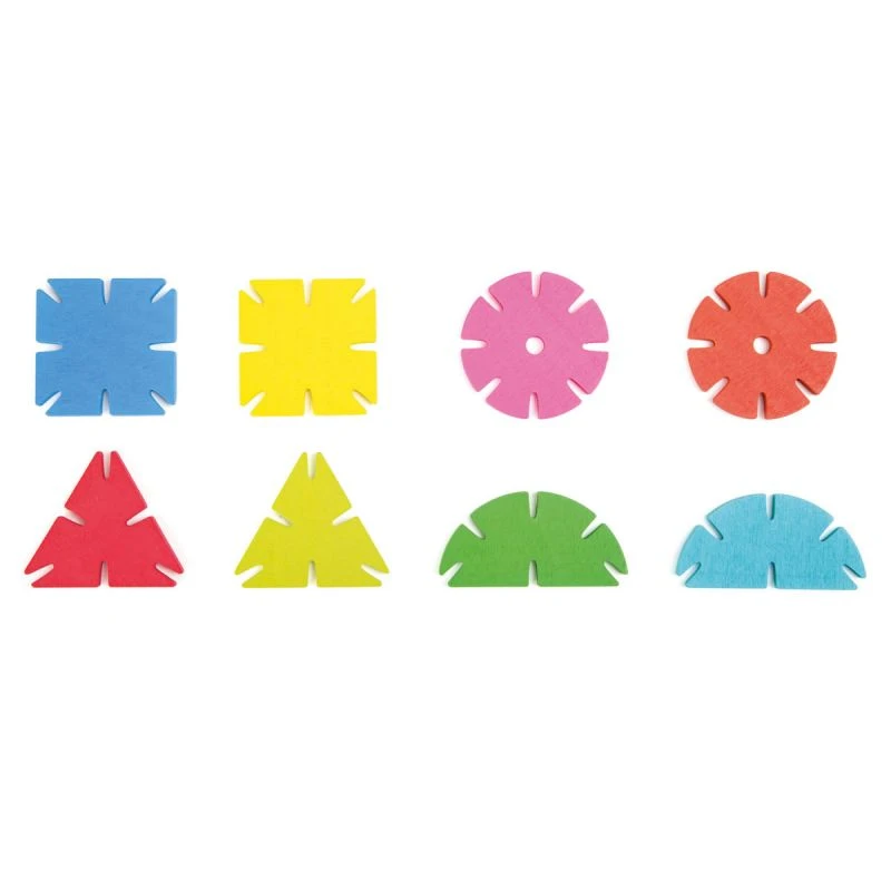 Voici un jeu simple contenant 120 pièces en bois qui va permettre à vos enfants d’imaginer toute sorte de construction ou reproduire des objets du quotidien à l’aide des 4 formes géométriques de base (carré, cercle, demi cercle et triangle).