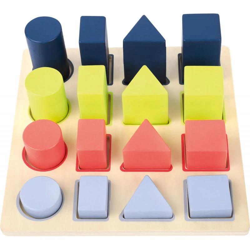 A la fois puzzle à encastrement et jeu de tri et de séquençage, ce puzzle géométrique est un jouet éducatif à plusieurs facettes.