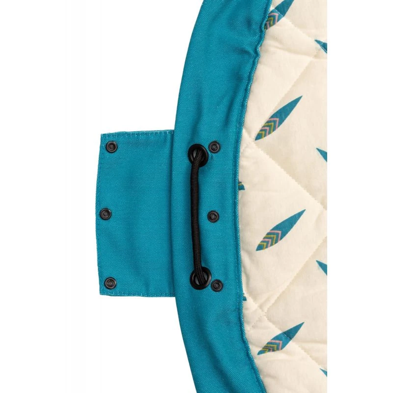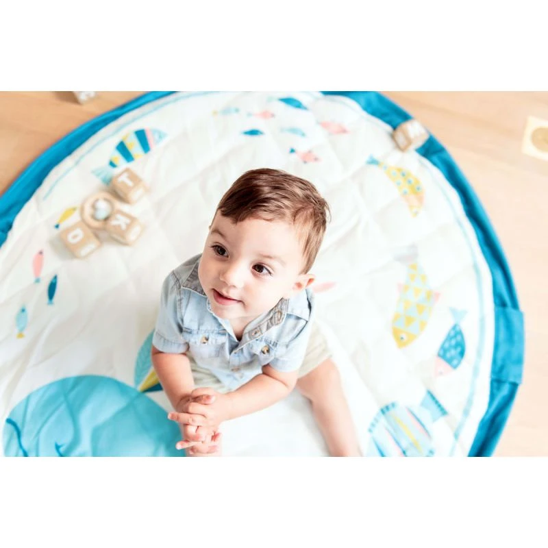 Créé en collaboration avec la célèbre marque française Moulin Roty ce joli tapis d’éveil présente côté face la baleine Olga et une myriade de petits poissons colorés aux jolis motifs. Les couleurs sont douces et l’ensemble très harmonieux. Côté pile le sac est orné de plumes délicatement colorées.
