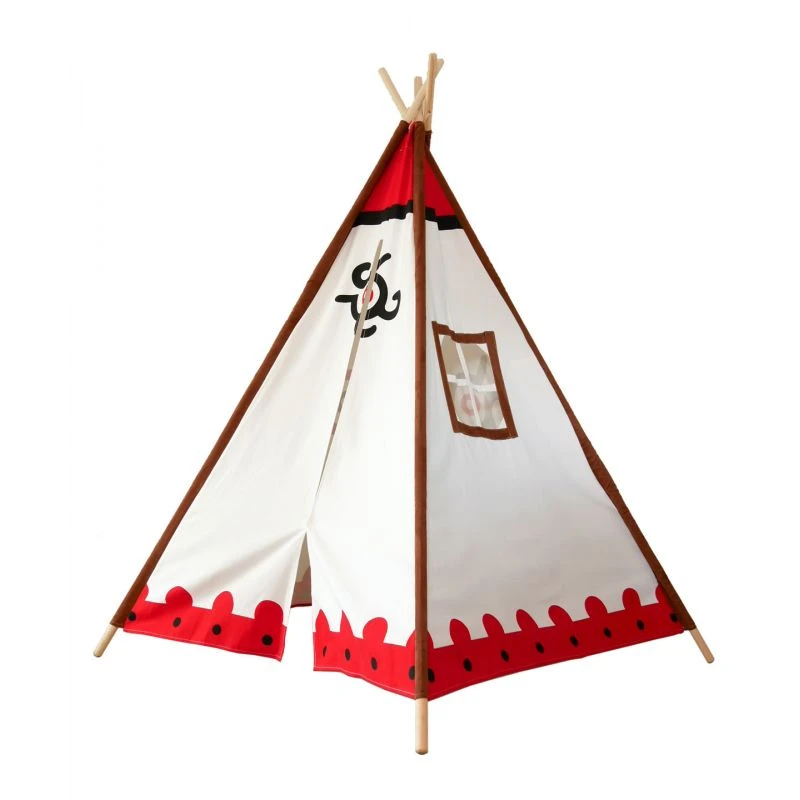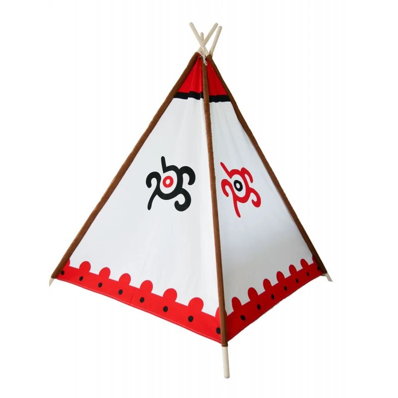 Ce tipi de taille généreuse est idéal pour jouer aux indiens. Ses signes géométriques aux couleurs rouges et noires typiques des graphismes des tribus d’indiens d’Amérique vont plonger vos enfants dans l’ambiance. Ce tipi deviendra rapidement leur repère dans lequel ils pourront se cacher, jouer, lire des histoires … et bien sûr jouer aux cowboys et aux indiens.