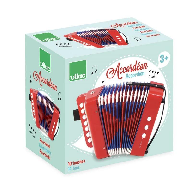 Yvette Horner n’aurait pas renié ce bel accordéon bleu blanc rouge. Possédant 10 touches et 14 tons, cet accordéon Vilac fera le bonheur d’un jeune enfant qui n’aura aucun mal à l’apprivoiser.